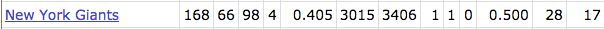 Giants lead series 98-66-4. This is the 98th season of the NFL. Eli Manning = 98