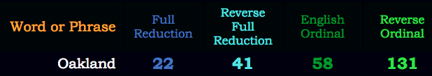 79 is the 22nd prime number; Oakland = 22; Basketball = 22
