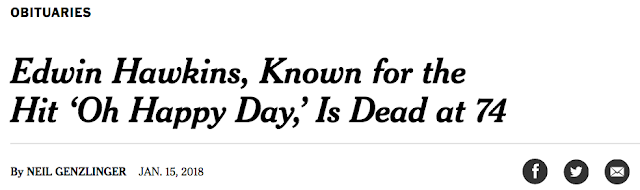 Notice the Gematria of 'Oh Happy Day'... 151, like his date of death 15/1, on Martin Luther King Jr. Day, January 15, 2018.