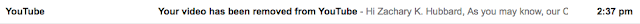 Here we go again. There was nothing in the video that violated the TOS, it was quick and to the point, 3:00+ long, all facts, no rants.