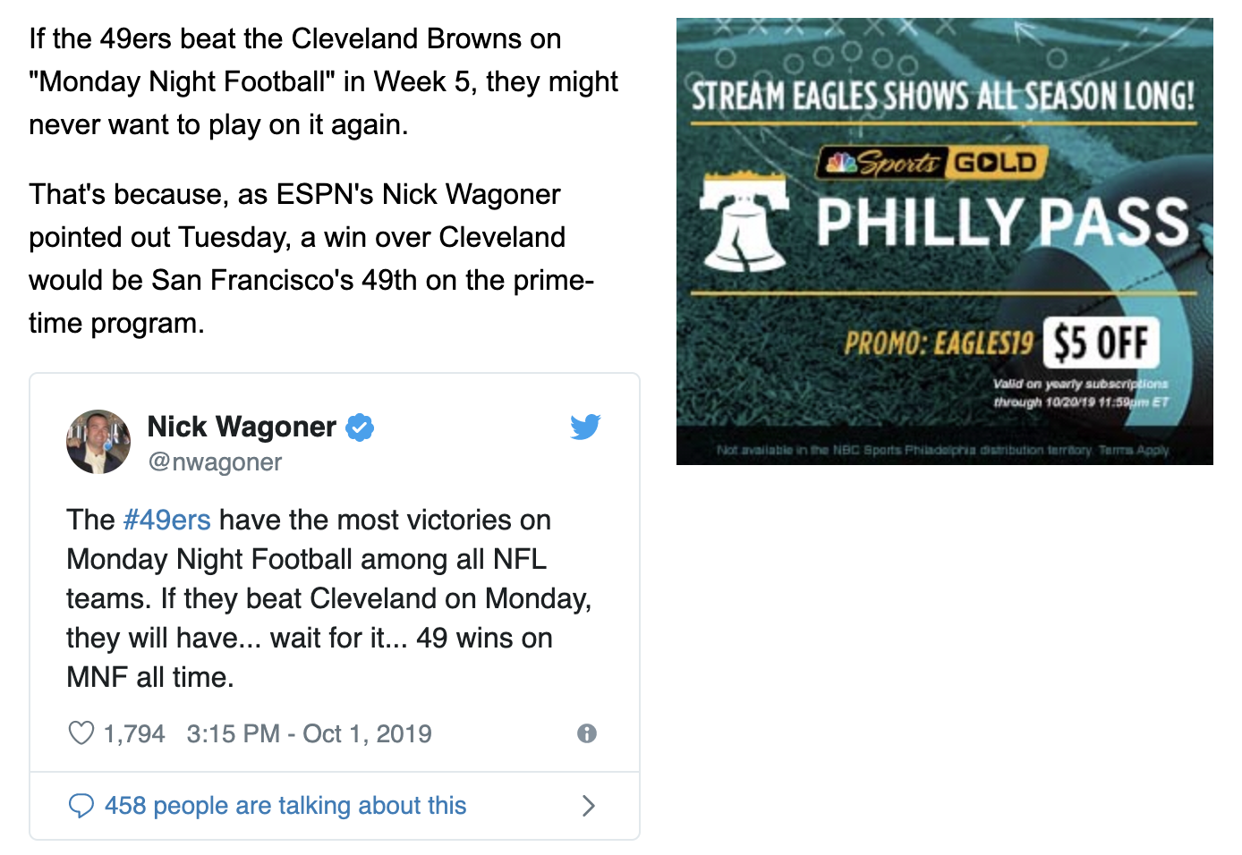 Link : 49 | The 49ers 49 riddle, Monday Night Football, Octotber 7, 2019